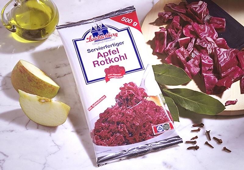 Raffiniert abgeschmeckt mit aromatischen Äpfeln und edlen Gewürzen. Servierfertig und in Minuten ein köstliches Gericht. Mit Apfelstücken im 500g Alu Frischebeutel ohne Kühlung 15 Monate haltbar