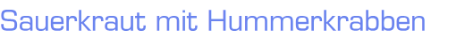 Die Schalotten würfeln und in Butter anschwitzen. Das Sauerkraut dazugeben. Sekt angießen und ca. 10 Minuten zugedeckt bei kleiner Flamme dünsten. Die Hummerkrabben in kochendes Wasser geben und ca 20-30 Minuten garziehen lassen. Für die Soße 1dl Creme Fraiche, 1dl Sahne sämig kochen, 50g gehackten Kerbel dazugeben und alles im Mixer pürieren. Mit etwas Sauerkraut Sud und Salz und Pfeffer abschmecken.